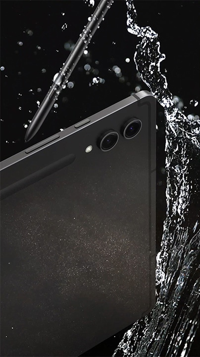 Cuando el día se pone difícil, la serie Galaxy Tab S9 mantiene al máximo su resistencia y durabilidad. El diseño de metal suave combina con nuestro marco Armor Aluminium8 más resistente, que hace honor a su nombre y protege la tableta de golpes y caídas. Además, la clasificación IP689,10 significa que es nuestra primera serie Galaxy Tab S resistente al agua y al polvo.